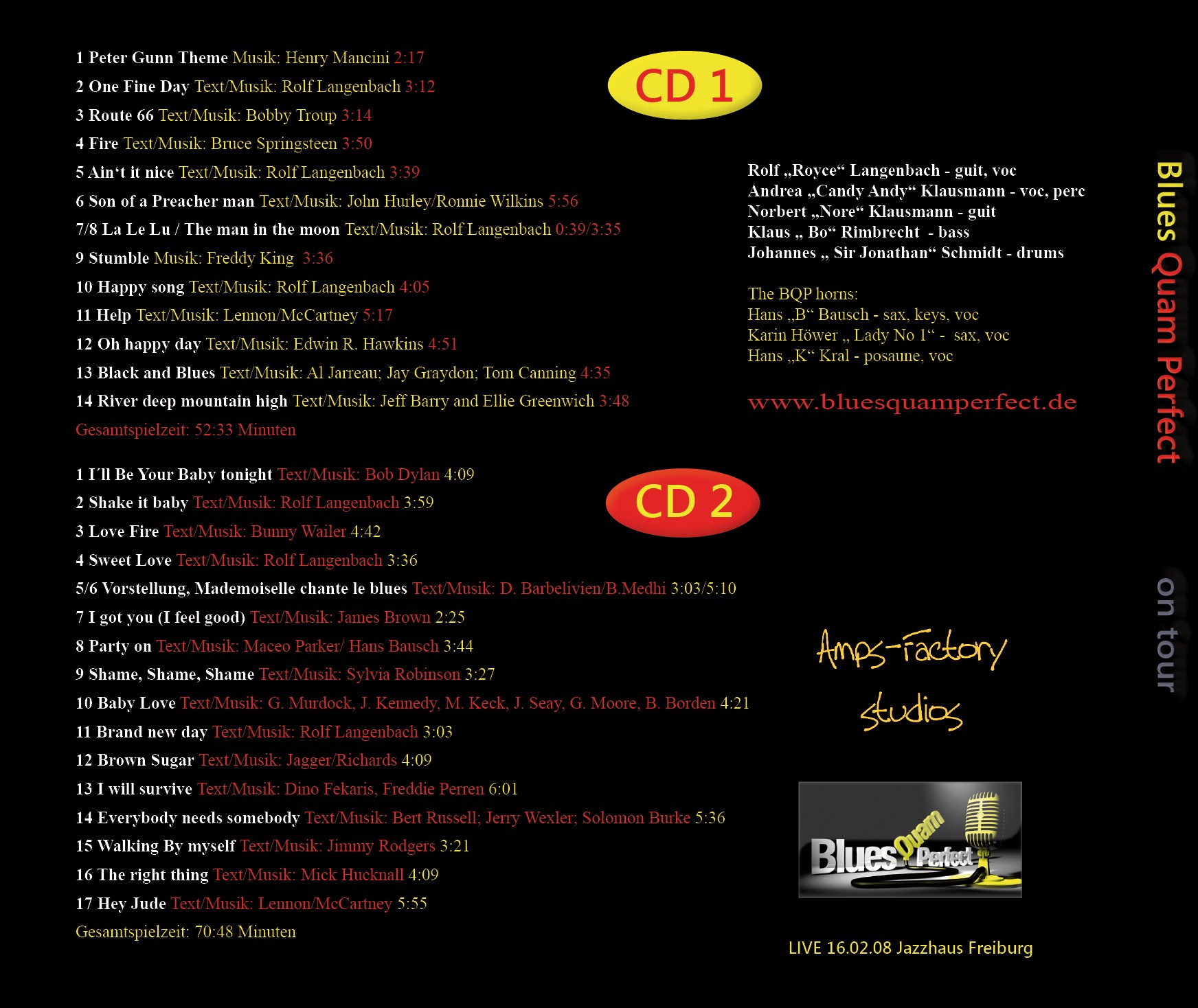 | Original BQP Songs | Covered Songs | Dauer 70:48 |