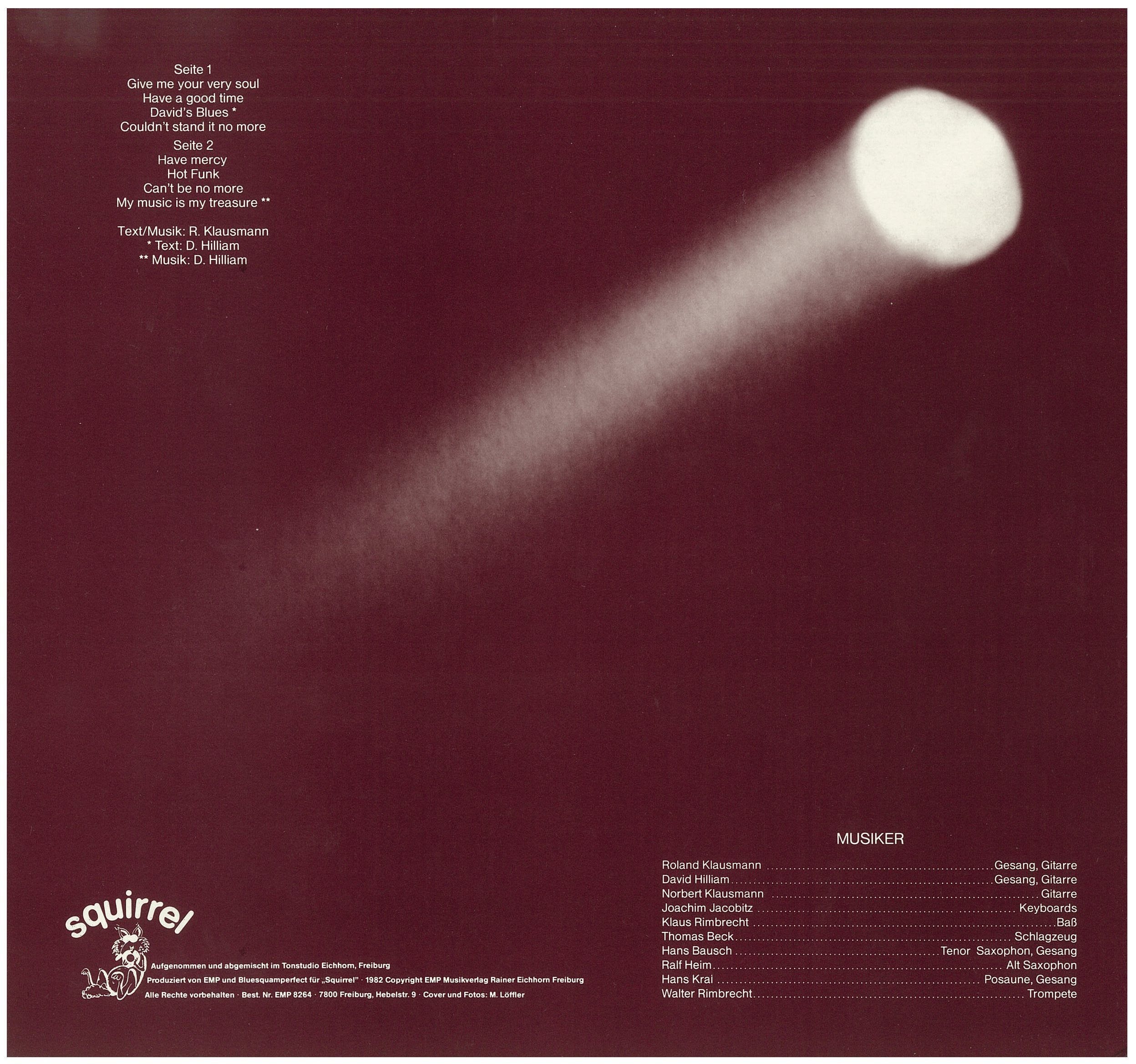 Give me your very soul 2:52 (R. Klausmann) Have a good time 4:03 (R. Klausmann) David´s Blues 3:13 (D. Hilliam) Could´n´t stand it no more 5:33 (R. Klausmann) Have mercy 5:25 (R. Klausmann) Hot funk 2:44 (R. Klausmann) Can´t be no more 5:56 (R. Klausmann) My music is my treasure 5:00 (R. Klausmann)